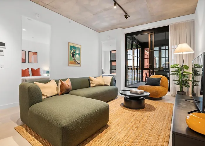 Featuring an outdoor pool area, the 2-room Modern, Luxury Oasis Apartment is only a 6-minute walk from The Hive Shopping Centre. In the apartment, set within convenient reach of Smith Street, guests will find a hot tub.